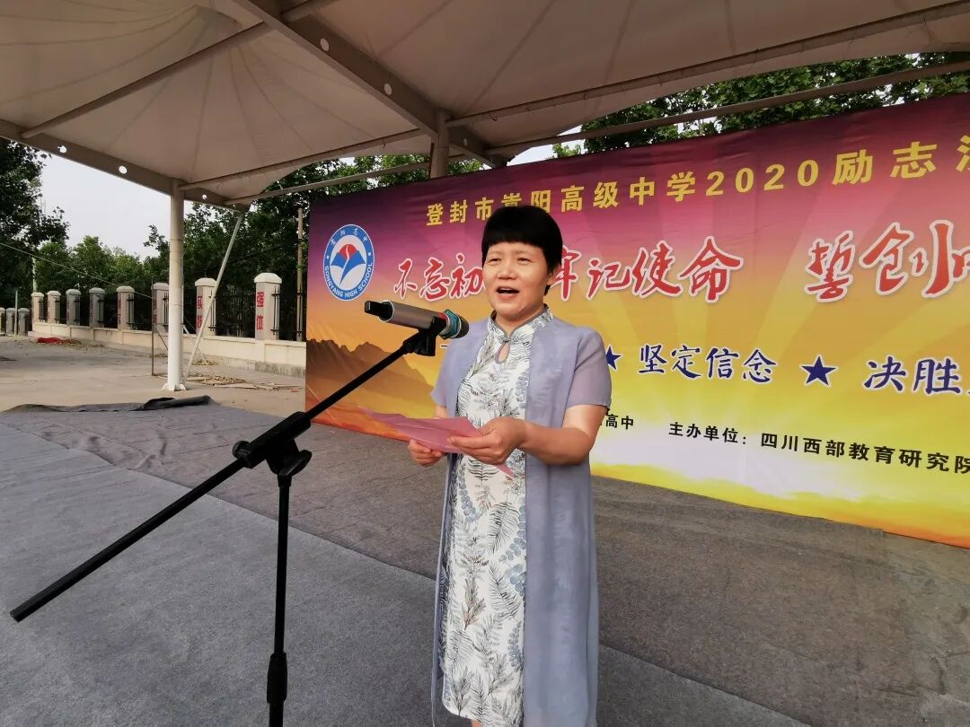 青春何处风光好?热血青年数嵩高。2020年6月6日6点钟06分,登封市嵩阳高级中学2020年“不忘初心,牢记使命,誓创唯一,超越巅峰”高考励志演讲挑战会在学校大操场隆重召开。校长刘秋珍,书记刘国俊,副书记吴向辉,副校长康小铭、李光辉、张伟欣,支部委员王北贤等学校全体领导、全体同学和高三学生家长、部分教师参加。大会由学校办公室主任贾松霞主持。